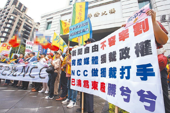 比如,因为中天转播了台湾歌手林志炫参加的《我是歌手》比赛,就被NCC(台所谓“国家通讯传播委员会”)罚款。而在黄智贤到厦门海峡论坛演讲,说“我们这一代要把台湾带回家”之后第三天,《夜问打权》就被民进党当局关闭了。