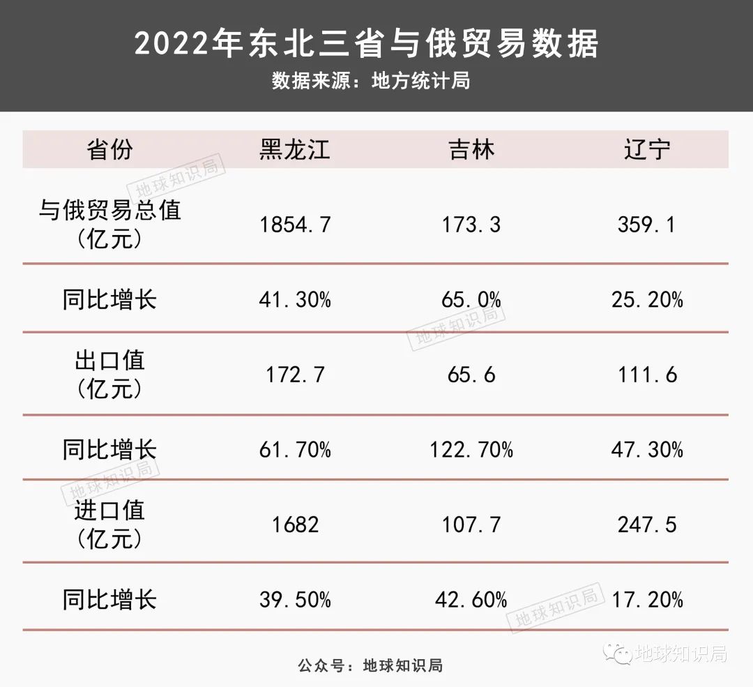要知道俄乌冲突去年2月就爆发了,早在去年东北就迎来了对俄罗斯贸易的增长:去年黑龙江对俄罗斯进出口同比增长41.3%,其中出口增长61.7%,进口增长39.5%;吉林对俄罗斯进出口同比增长65.0%,其中出口增长122.7%,进口增长42.6%;辽宁对俄罗斯进出口同比增长25.2%,其中出口增长47.3%,进口增长17.2%。