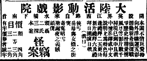 1914年上海《申报》刊登的大陆活动影戏院广告已经标明了价目