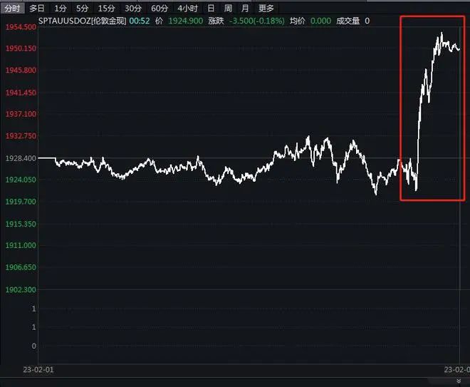 美元指数明显走弱,目前大跌0.92%,报101.1649,欧元、澳元兑美元均涨超1%,日元、瑞郎、离岸人民币等兑美元均有明显涨势。现货黄金盘中剧烈拉升,现涨超1.1%,报1950.72美元/盎司,上涨逾22美元/盎司。