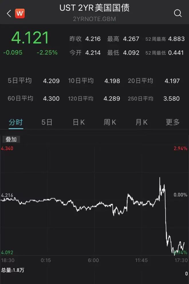 美联储的最新动向引发金融市场出现显著波动。美国国债盘中跳水,2年期国债、10年期国债均下跌超2%,3个月期国债目前也下跌0.77%。