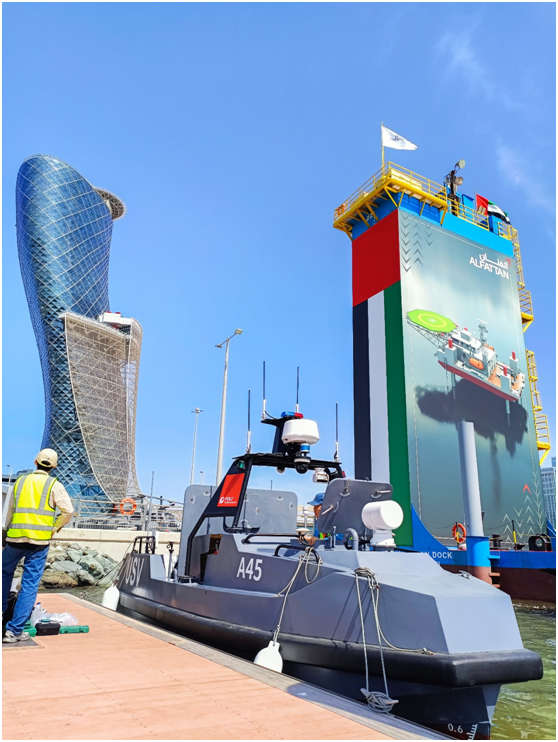 通过阿布扎比会展中心的基站,可以远程遥控中国珠海的无人艇行动