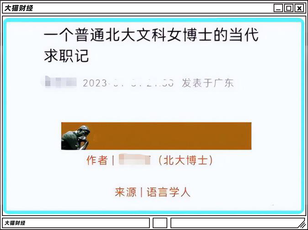 前些天,一位北大女博士在网上分享了自己艰难的求职经历,明明是顶尖名校的高学历人才,却找不到工作,找半天原因,大概因为她读的是文科。