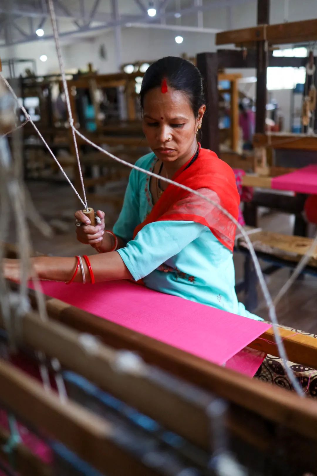 过去10年,印度没有接住中国释放的纺织行业机会。图为一名印度妇女在印度一家手工织机工厂工作。