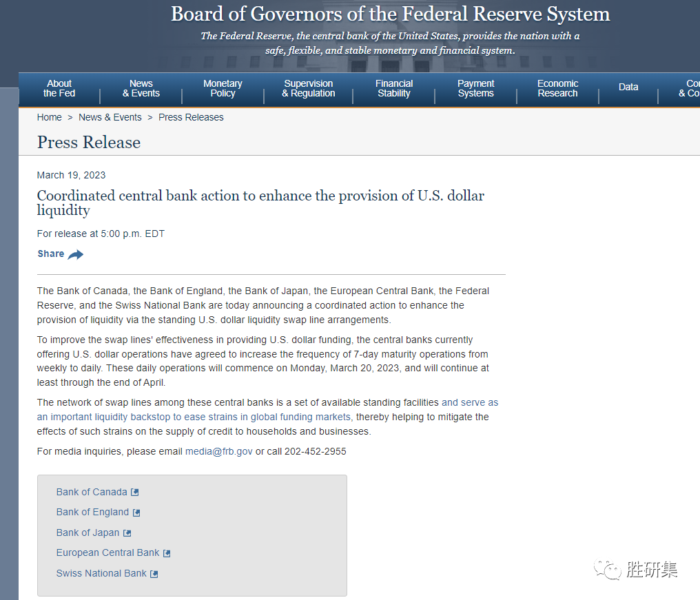 3月9日,加拿大银行、英格兰银行、日本银行、欧洲中央银行、美联储和瑞士国家银行宣布一项协调行动,通过常设美元流动性互换额度安排加强流动性供应 。