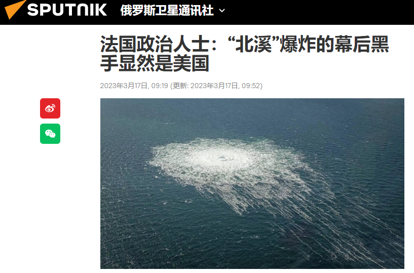 但法国右翼的“爱国者党”党魁菲利波称,幕后黑手就是美国,因为美方多年以来一直反对北溪管道。