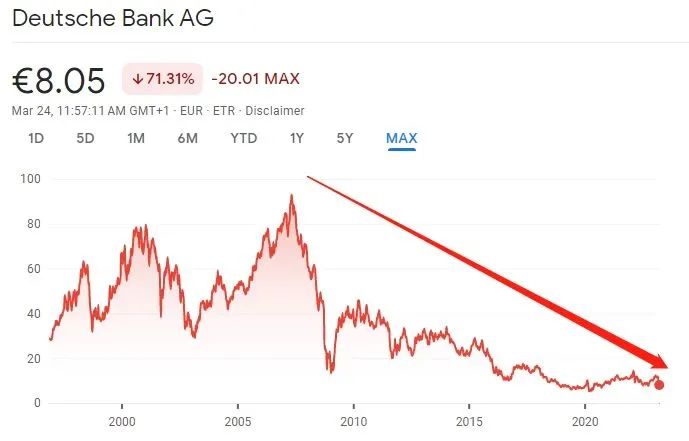 德银周五大跌 图片来源:雅虎财经截至发稿,德国商业银行跌8.26%、法国兴业银行跌7.5%、法国巴黎银行跌6.58%。斯托克600银行指数周五下挫4.4%,不仅成为全欧洲表现最差的板块,还抹平了今年年初以来的所有涨幅。
