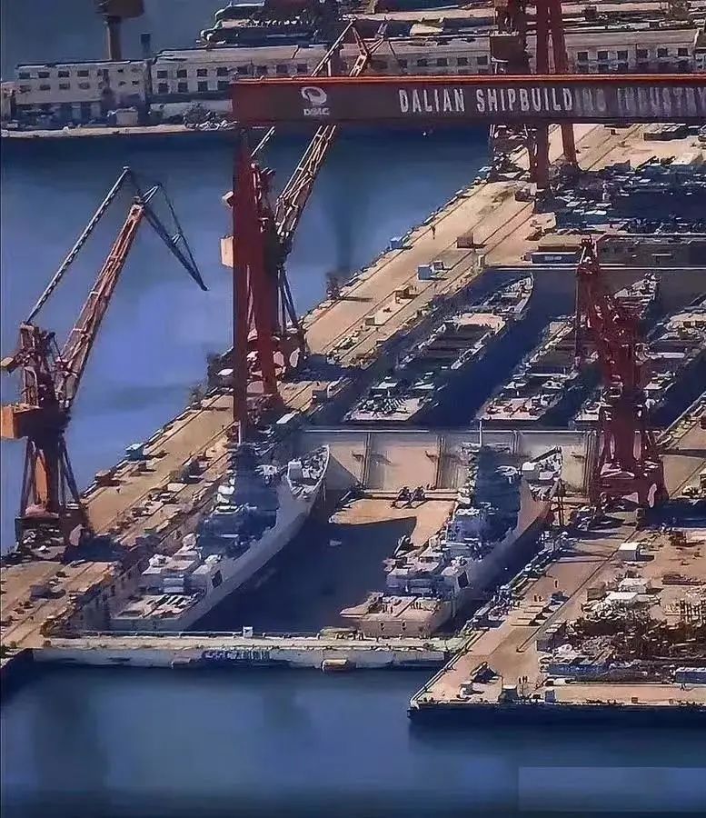 据外媒援引国外社交网络照片分析称,中国海军正在开启新一轮“下饺子”:大连造船厂在建造大约5艘052DL型驱逐舰,其中2艘已经在数天前下水;上海江南造船厂出现了疑似055型驱逐舰的新分段;在广州黄埔造船厂的厂房里,可能有更多的054A型护卫舰在建;上海沪东中华造船厂也出现了疑似是054B型护卫舰的分段……