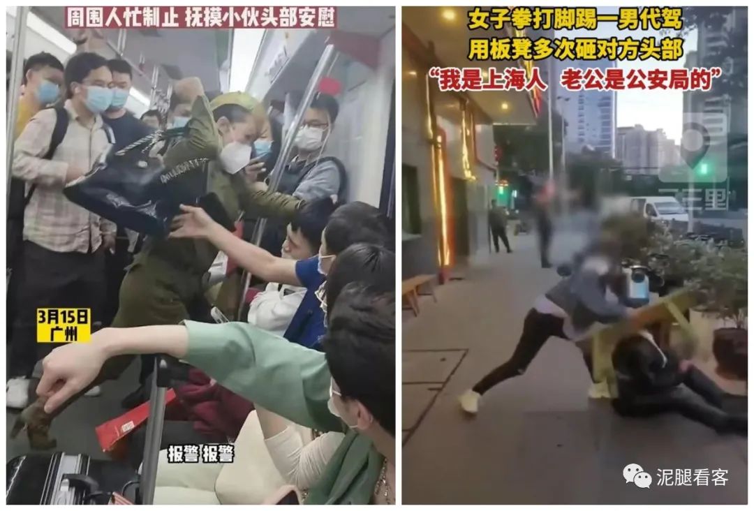 二是广州地铁上,一个50岁大妈,殴打一个年轻小伙。甚至高喊:男人就该给女人让座。这个女的穿着二战时女子别动队服装,在地铁上十分嚣张,也同样引起了民众的网上围观,人人喊打。后来被拘留10天,罚款500元。