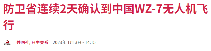 日本共同社1月3日的报道称,日本防卫省统合幕僚监部1月1日发布消息称,中国军队的1架WZ-7无人侦察机当天上午至下午通过冲绳本岛和宫古岛之间,往返于东海和太平洋。这是首次确认到该机种的飞行。2日也确认到该型号无人机往返飞行。防卫省对中国军方无人机日益频繁的活动保持警惕,正在分析目的。