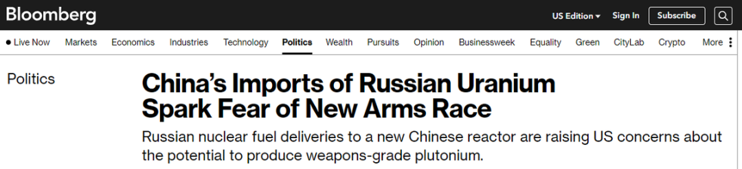 面对西方的挑衅,俄罗斯在今年2月暂停了《新削减战略武器条约》。现在一些美国的专家紧跟时局,又把与该条约没有任何关系的中方拉进来说事,声称“中国正受益于俄罗斯的支持”,并以此呼吁美国也可以扩大自己的核材料储备,以应对中国购买核材料以及俄罗斯废除军控条约。