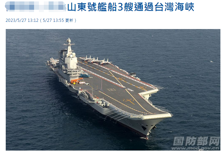 “中央社”的报道配图为取自中国国防部官网的航母资料照片。