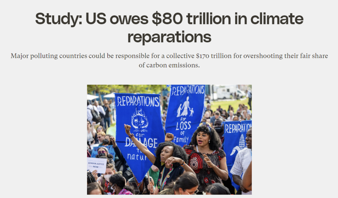 这位学者的研究为“气候索赔”提供了更多依据,缺点是他也没能提出如何让美国拿出80万亿美元的办法。