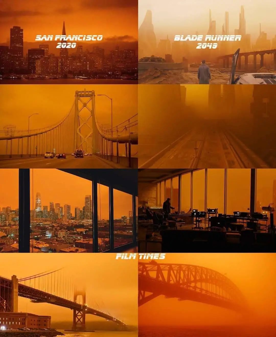 不少美国网民形容此情此景宛如“人间炼狱”、“末世降临”,和废土美学风电影《银翼杀手2049》中黄沙肆虐的场景有得一拼。