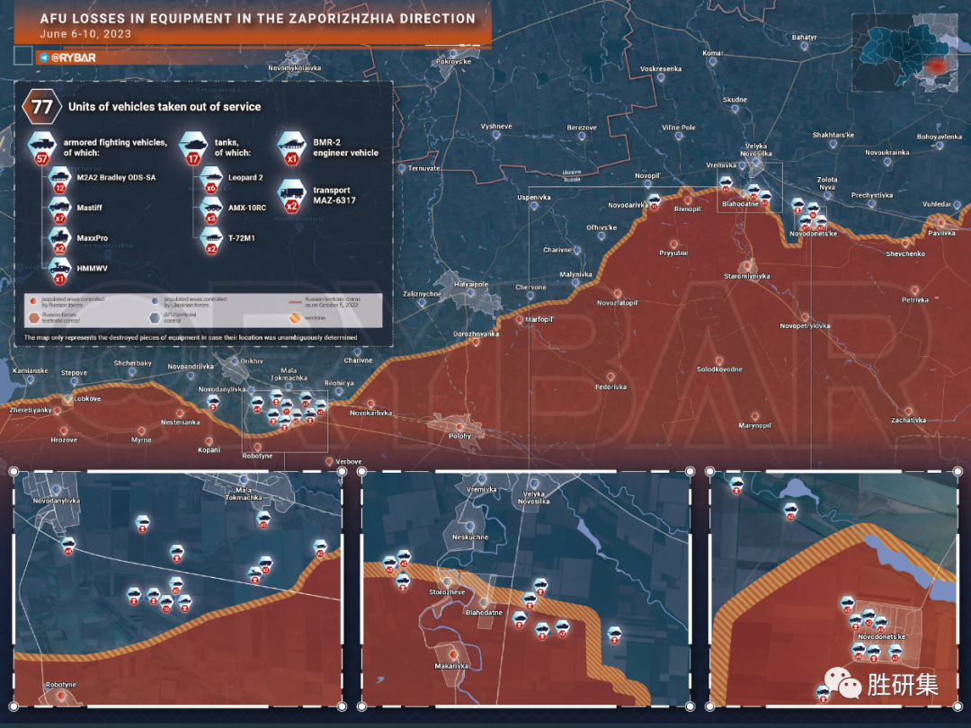 过去一周乌克兰武装部队在扎波罗热方向的损失被整理成地图如下。