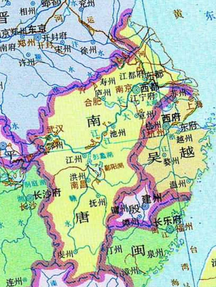 南唐与吴越位置示意图。来源/谭其骧版《中国历史地图集》