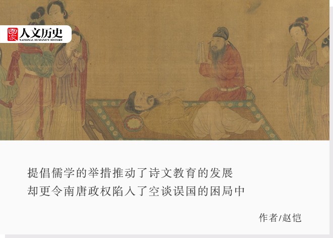 然而,儒学的根本还在于经邦济世,为了避免讨论一些敏感的时政问题,李煜干脆要求南唐科举的进士科考试以诗赋为主,这一做法为诗歌创作提供了良好氛围,推动了南唐诗坛的繁荣和诗文教育的发展,却更令南唐政权陷入了一种空谈误国的困局之中。