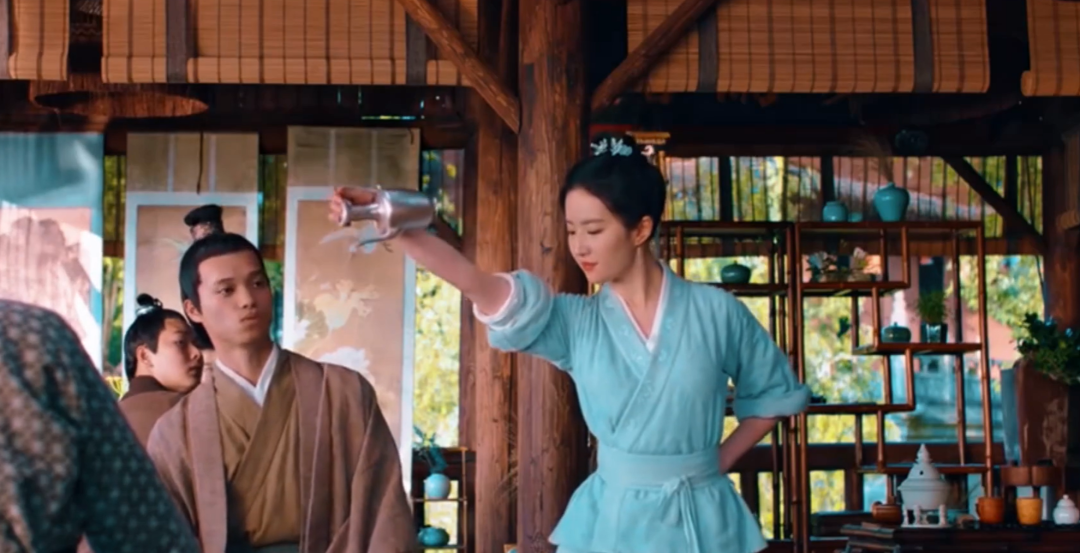 赵盼儿(刘亦菲饰)右手提壶,动作娴熟地将紫苏饮子倒于杯中。来源/电视剧《梦华录》截图