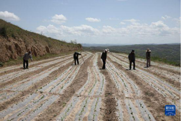 2022年5月11日,甘肃天水市秦州区天水镇,农民在复垦耕地上劳作。图|新华社记者 王紫轩 摄