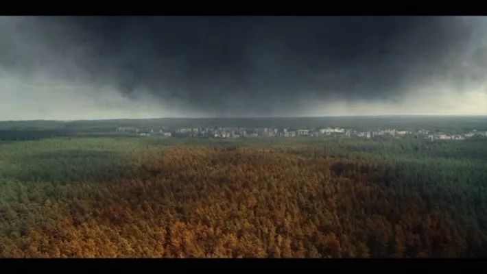 被乌云笼罩的城市。来源/电视剧《切尔诺贝利》剧照