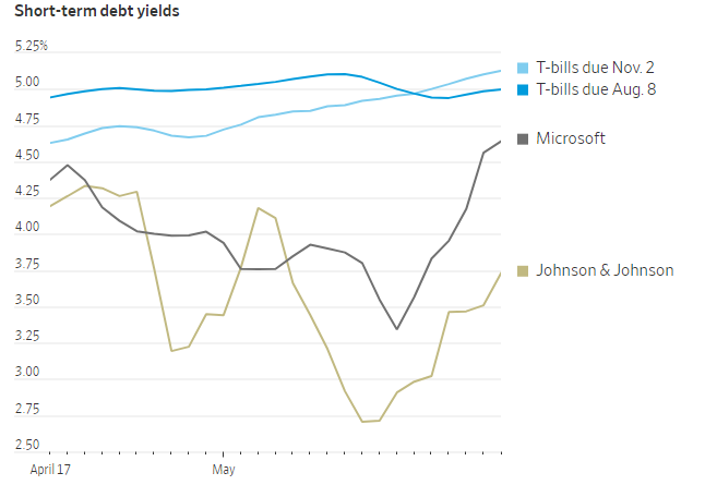 但在债务问题成为两党政治博弈工具的情况下,相较于美国政府,市场认为高评级公司更靠得住,越来越多的投资者在面临不确定性是选择溢价购买收益率较低的公司债券,而非传统认知中“无风险”的美债。