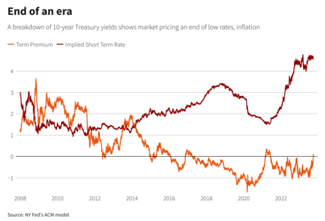 有市场分析认为,观察美债期限溢价(term premium)的变动可能有助于理解目前市场发生了什么。