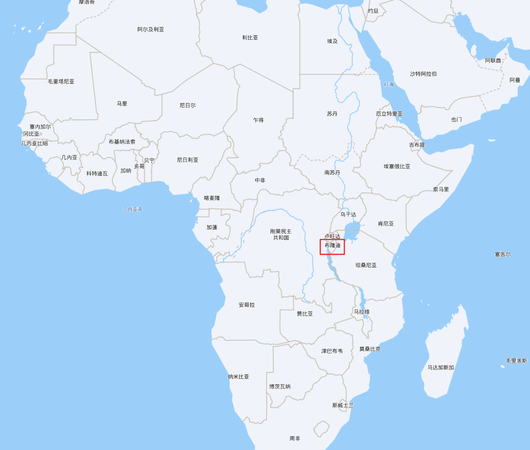 布隆迪的地理位置。底图/百度地图