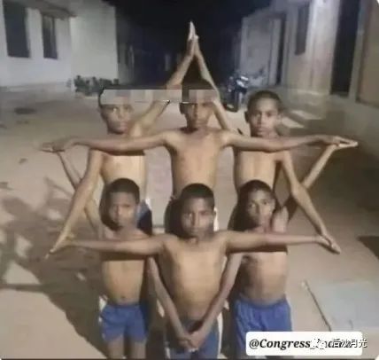 几位印度儿童摆出了六芒星人体造型,希望能引起以色列的关注。