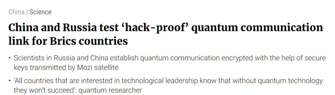 据参考消息援引香港《南华早报》网站2023年12月30日报道,借助中国的墨子卫星传输的安全密钥,中国和俄罗斯的科学家成功建立了加密的量子通信。这表明,金砖国家量子通信网络在技术上或可行。