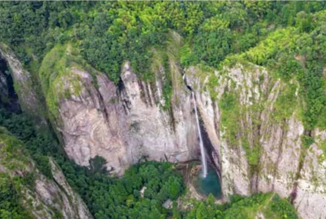 大龙湫瀑布,位于浙江省乐清市雁荡山。徐霞客在崇祯五年再游雁荡山时,终于找到雁湖,并核正了《大明一统志》中大龙湫瀑布源自雁湖的错误说法。