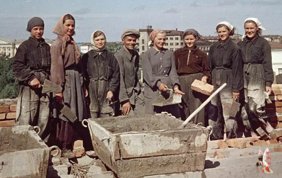 1950年代重建家园的苏联人,除一个老人、小孩外,全是女的。