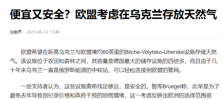 因为很多欧洲国家,它的工业生产,虽然因为能源问题,遭到重创,但因为有乌克兰这些储气库在,心里还是不慌的。