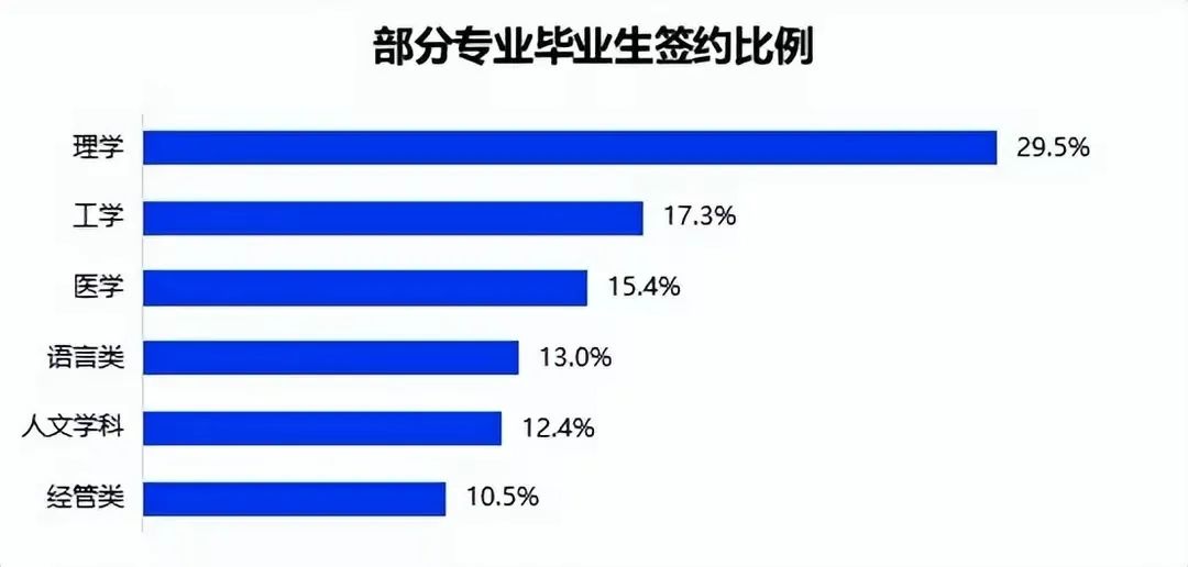 根据智联招聘《2022大学生就业力调研报告》显示,2022 年人文学科毕业生的就业签约率仅12.4%,而理科、工科的就业签约率分别为29.5%和17.3%。