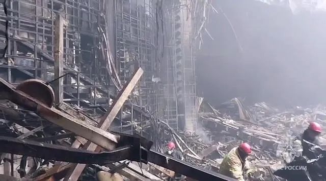 俄罗斯紧急情况部3月23日发布的视频截图显示,救援人员在现场工作 图:新华社
