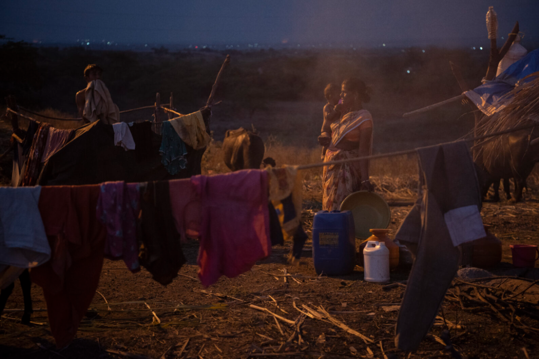 马哈拉施特拉邦的运作方式与此不同。约有一百万工人,通常来自比德,在数天内迁移到南部和西部的糖田。在整个收获季节,大约从 10 月到次年 3 月,他们带着随身携带的物品,从一块地搬到另一块地。