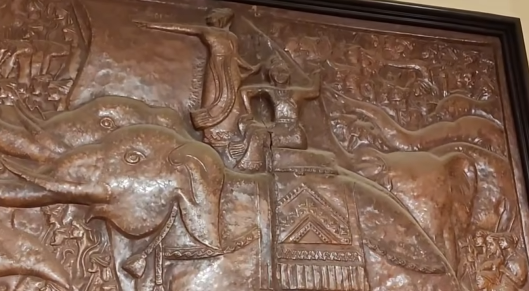 这是越南国家历史博物馆的一个画像,画像是两个女性骑在大象上,当年二征夫人武装反抗东汉的故事。