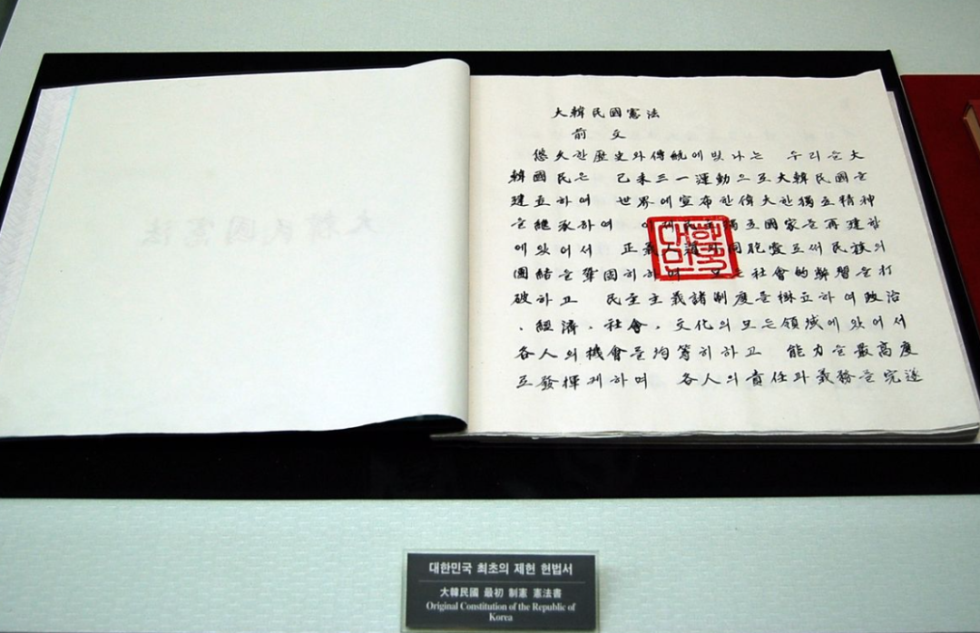 可是如果我们回顾历史,无论是韩国还是越南,他们当年在儒家文化圈内,本身并不把自己当成“外国人”,这些使臣和中原王朝来往非常密切,当年韩文被发明后,韩国人非常抗拒韩文,都不愿意用,甚至一直到韩国独立后,韩国的宪法都是中文书写的,如下:
