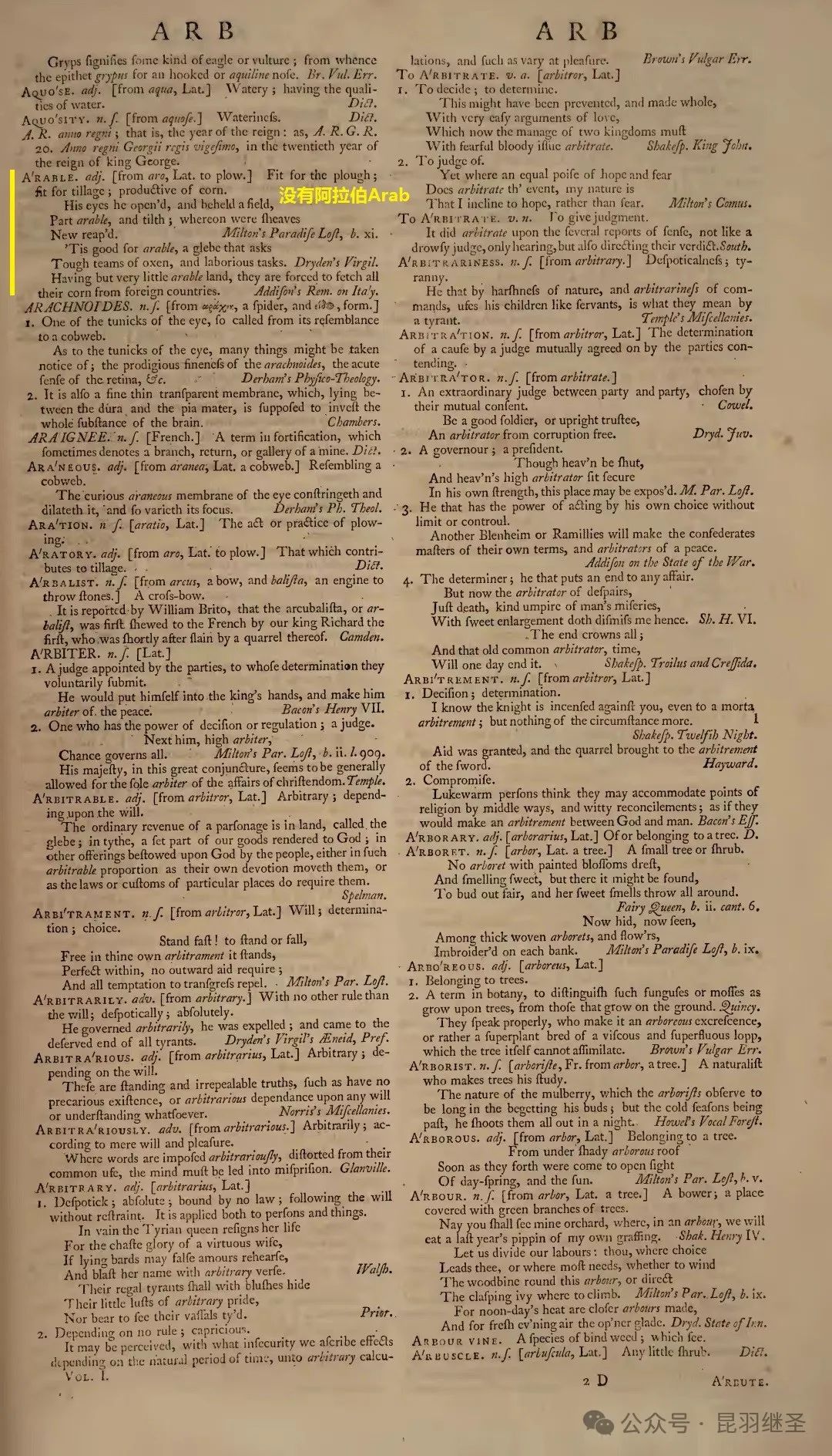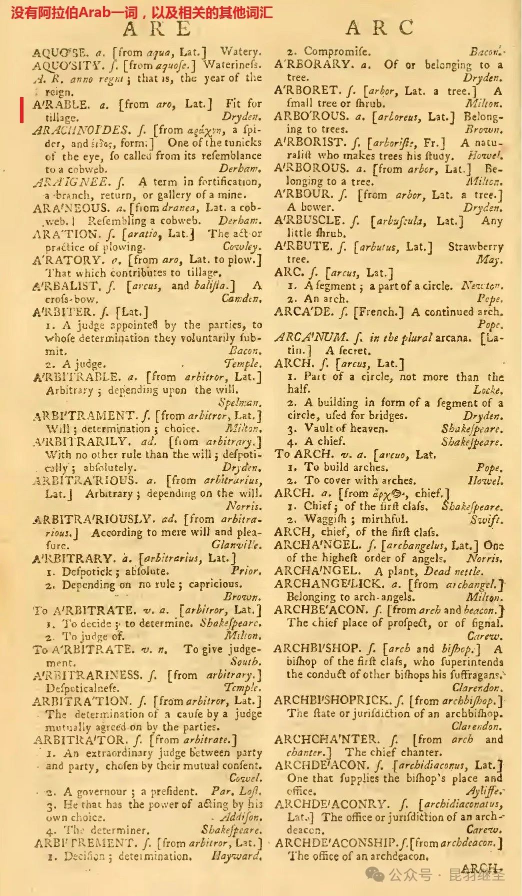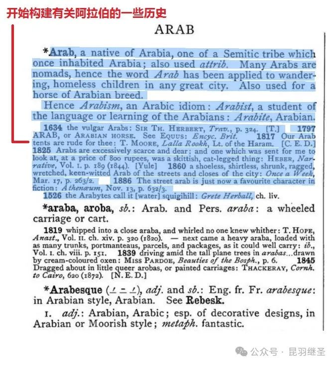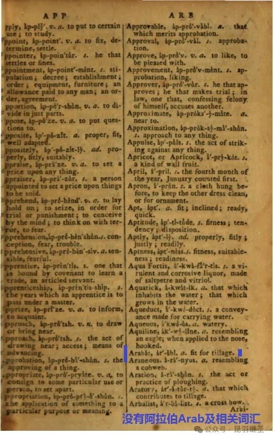 1755年的约翰逊词典中,找不到阿拉伯(Arab)字样,以及与之相关的任何词汇。