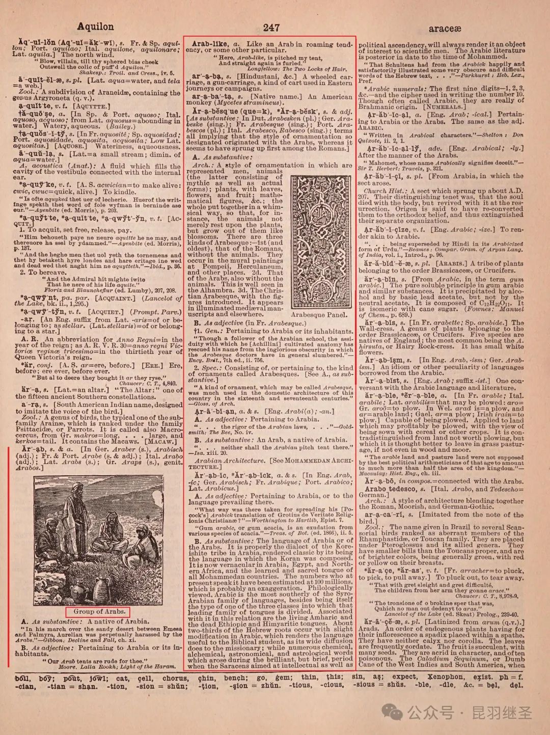 到了1911年,罗伯特·亨特在芝加哥主编出版了一本《新美英语百科全书》(《The New American Encyclopedia Dictionary of the English Language ),在该字典第247页,有关阿拉伯的概念和词汇占据了整整三分之二的篇幅,且图文并茂,生怕别人不知道了。