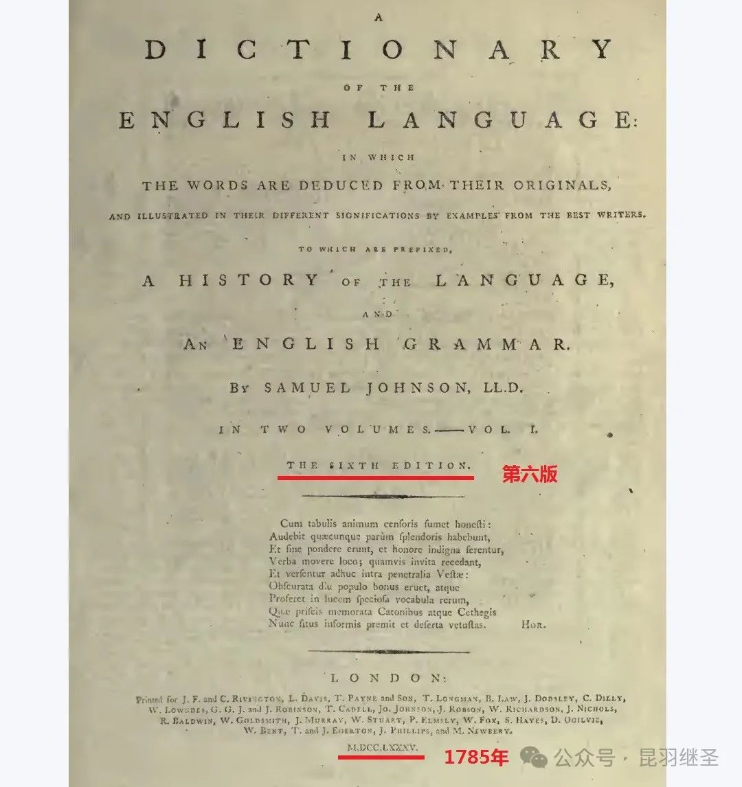 1785年的约翰逊词典(第六版)。