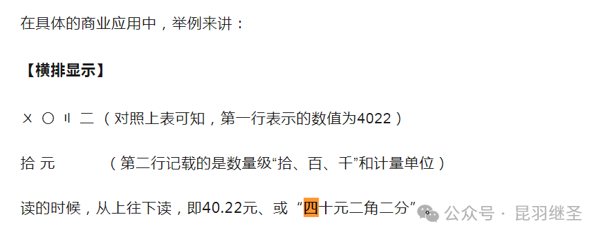 正因为如此,苏州码子中便出现了〇的表示方法,而“X”在苏州码子中代表数字“四”。苏州码子脱胎于算筹,也是一种进十进位制计数系统。