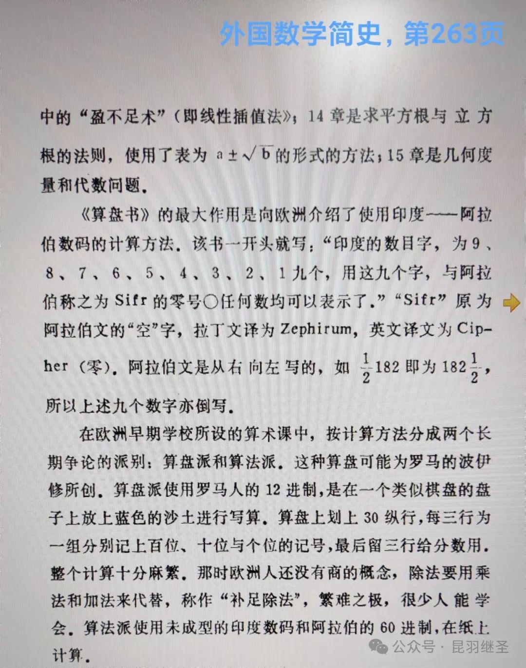 笔者注意到,在该页中,对Cipher的英文解释为“in arithmetic,is denoted by 零”,大意便是“在算术中,由零来表示”。注意,不是西方所称之数学(Math),而是算术。那这个算术,是否与华夏有关呢?