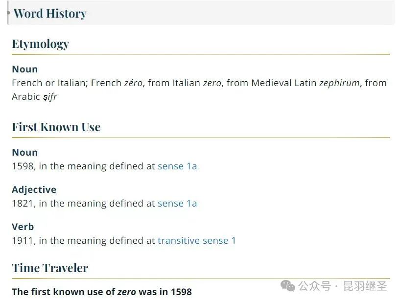 而且,需要特别指出的是,该字典中有没有注明 Zero 这个单词来源于“阿拉伯”或与阿拉伯存在一丝联系? 显然没有。