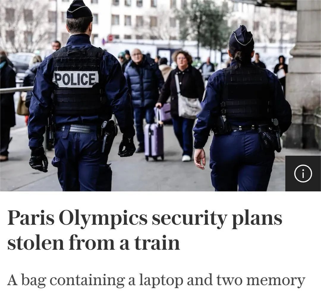 今年2月,在巴黎北站的一列火车上,有一名市政工作人员被扒窃,失窃物品包括两个含有奥运安保计划的U盘。