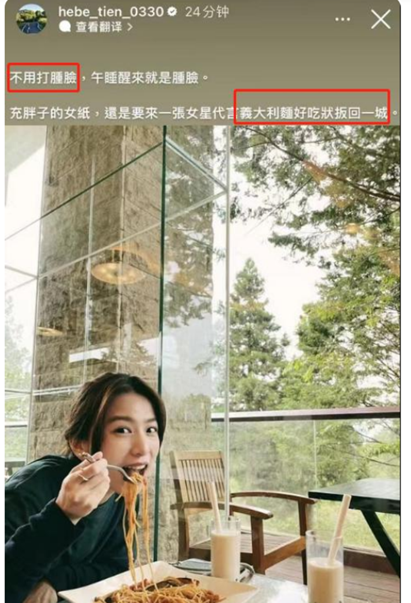 可是田馥甄却偏偏在佩洛西窜台落地后专门发了个帖子,照片上她脸上带着得意地笑,吃着意大利面。配文里的“打肿脸充胖子”、“意大利面好吃状扳回一城”(佩洛西是意大利裔)等字样。