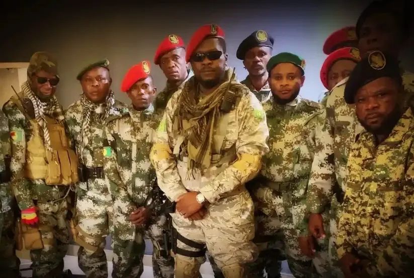 马兰加(居中戴墨镜)与党羽身穿军服合影。图/马兰加个人网站