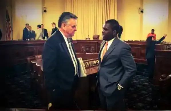 马兰加(右)与美众议员彼得·金交谈。图/马兰加个人网站