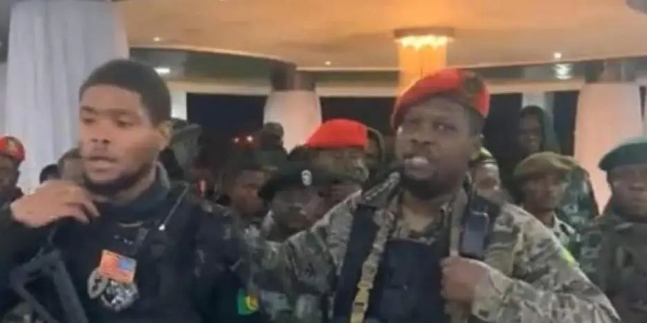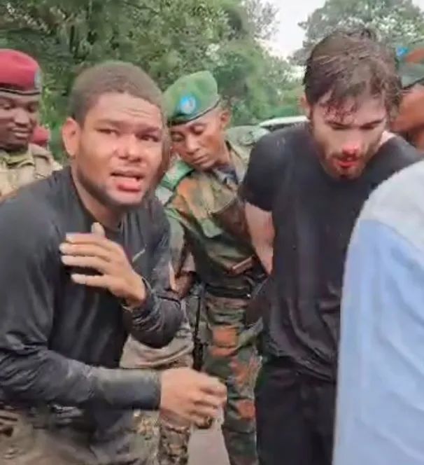 马塞尔(左)和另一名美国人被逮捕。图/“非洲地平线”网站视频截图