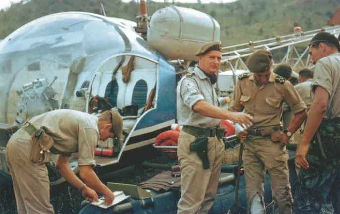 1965 年在刚果(金),迈克·霍尔(左二)安排伤员撤离。图/英国《每日电讯报》