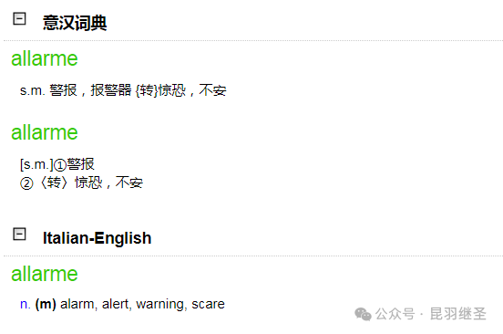 此等做法看似精明,但引发的后果却是“拔出萝卜带出泥”,笔者原本只是追溯英语单词Alarm的来源,可未曾想“顺藤摸瓜”,会带倒意大利语啊!